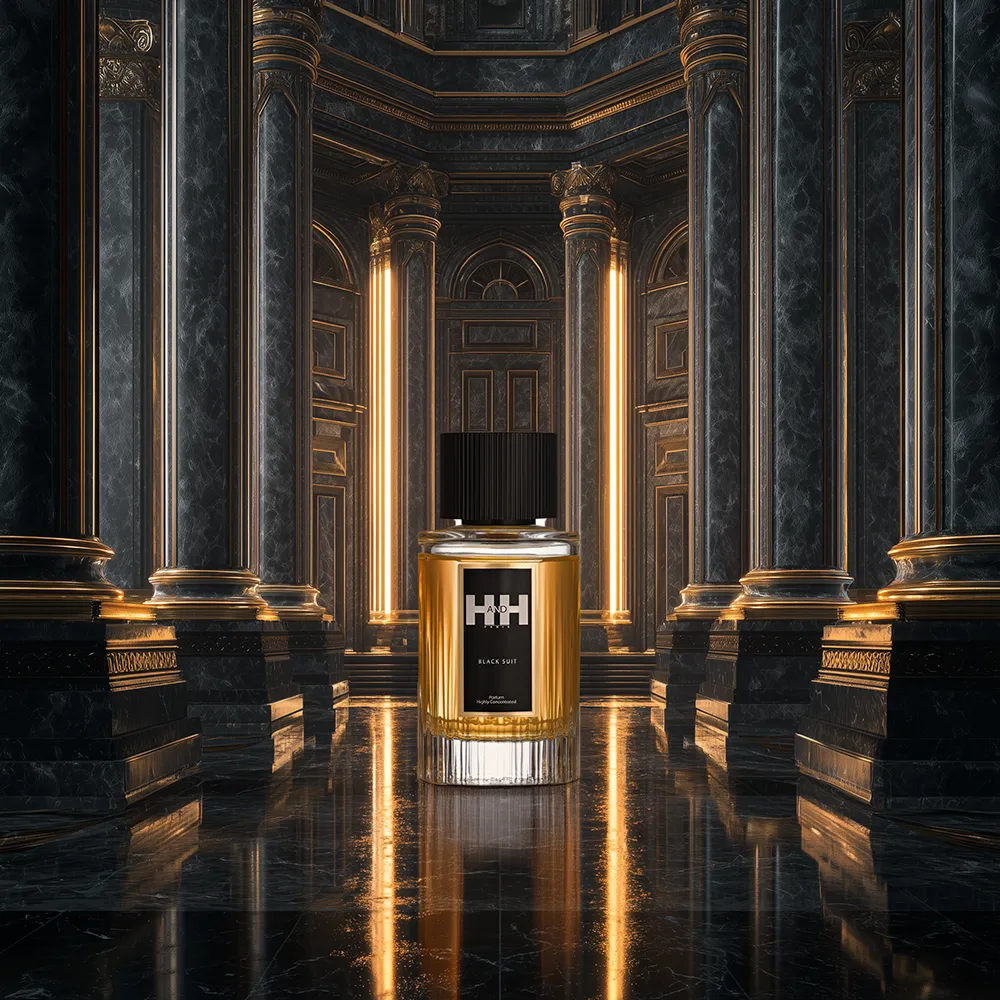 H&H Black Suit Extrait embodies the timeless and versatile elegance of a perfectly tailored black suit. This scent seamlessly adapts from day to night, where the lively duo of Lemon and Bergamot create a fresh and invigorating introduction. As the fragrance evolves, Lavender emerges at its core, infusing a serene dimension into the composition. To conclude, the base notes of Vetiver, Vanilla, Amber, and Patchouli intertwine to leave an irresistibly warm and sensuous trail.